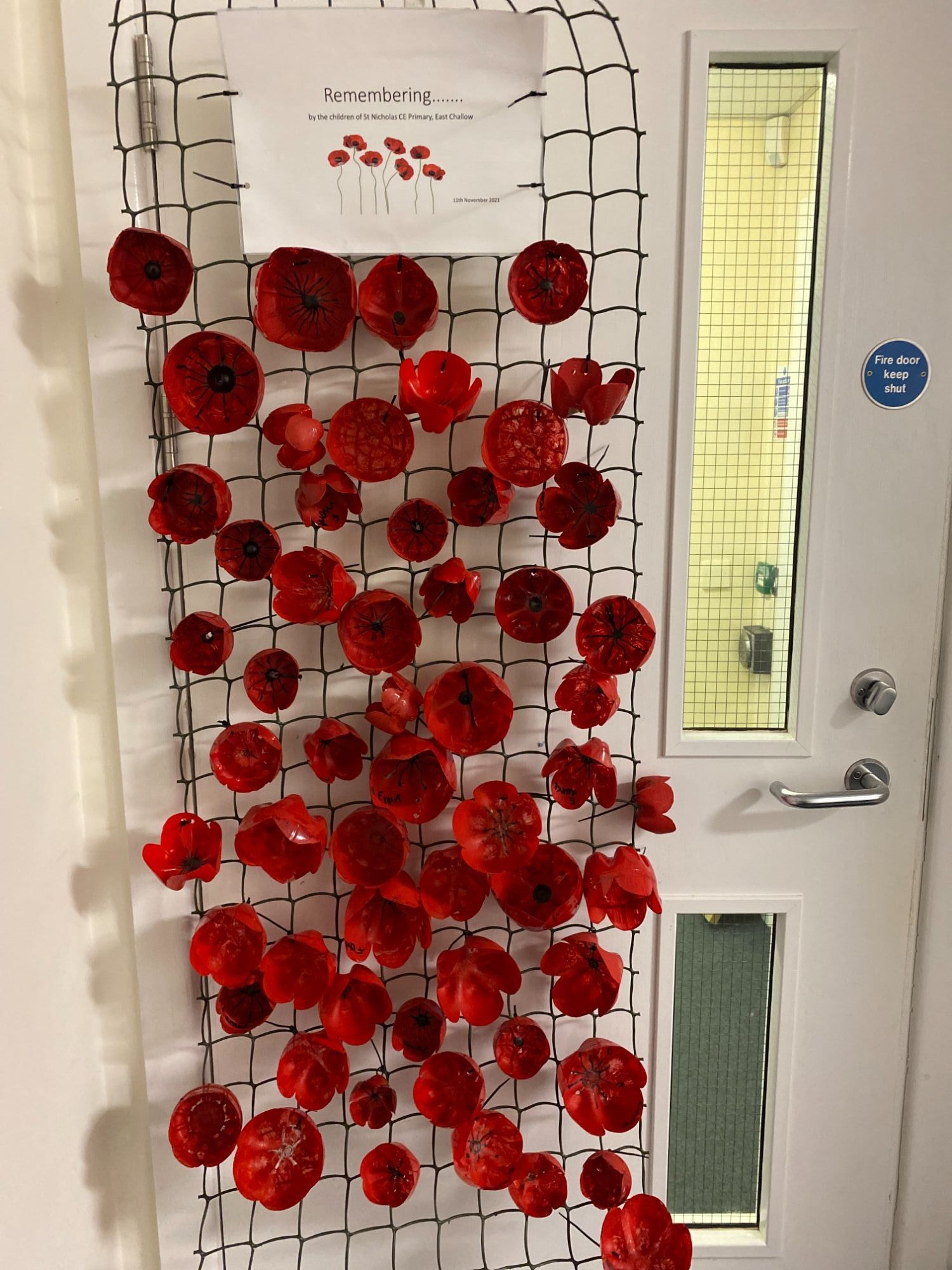 Every year we work with the British Legion in the village to fundraise, and support their annual poppy appeal.  Last year we created some artwork for them, using plastic bottles which I know was appreciated as they welcomed people on Remembrance Sunday.